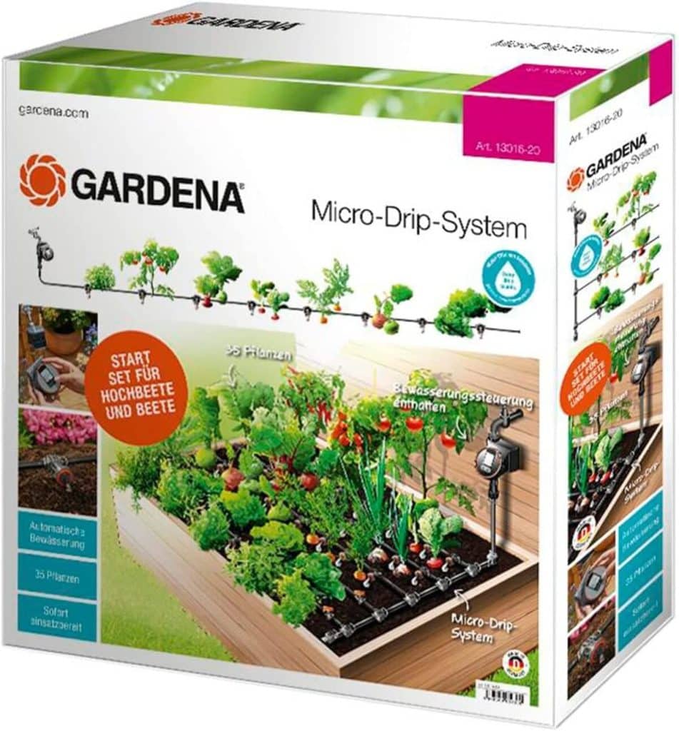 Gardena Kit d'arrosage goutte-à-goutte pour massifs et potagers : système d'arrosage Micro-Drip pour un arrosage individuel et flexible (13015-20)Utilisation flexible : la hauteur des buses de pulvérisation peut être réglée de manière flexible à l'aide de tubes prolongateurs Installation facile : la technologie de connexion Quick & Easy permet d'installer rapidement tous les composants Immédiatement opérationnel : le kit de démarrage contient tous les composants importants pour un arrosage en douceur Extension sans limites : le kit peut être étendu selon les besoins et se commande automatiquement avec un programmateur d'arrosage Gardena La livraison comprend : 1 kit d'arrosage pour massifs et potagers de Gardena, voir la description pour de plus amples détails, Made in Germany